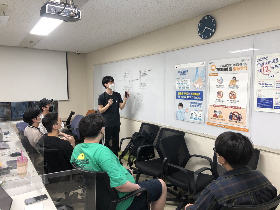 Covid-19 방역수칙을 준수하여 활동을 진행해야 하기 때문에 연수센터에서 오프라인으로 해커톤을 진행할 수 있는 팀은 한정되었습니다.