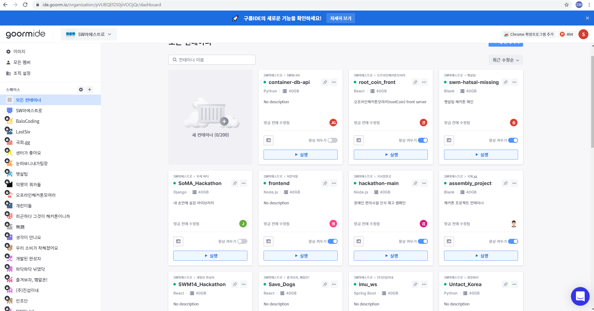 또한, 소마 해커톤에서는 연수생들의 더 쾌적한 프로젝트 환경을 위해서 국산 클라우드 통합개발 환경서비스 '구름IDE'를 사용하였습니다.