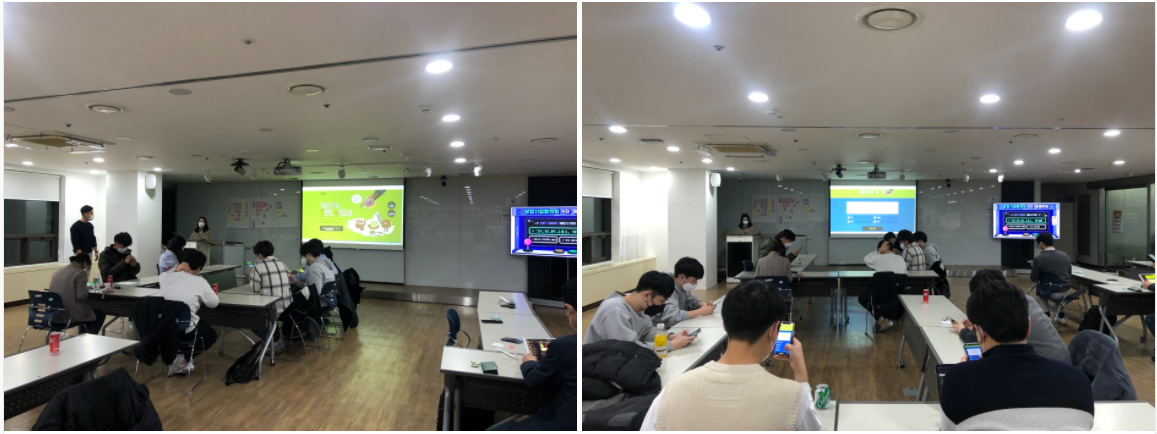 이때는 발표자뿐만 아니라 팀원이 전원 나와서 대답을 해주셨답니다.