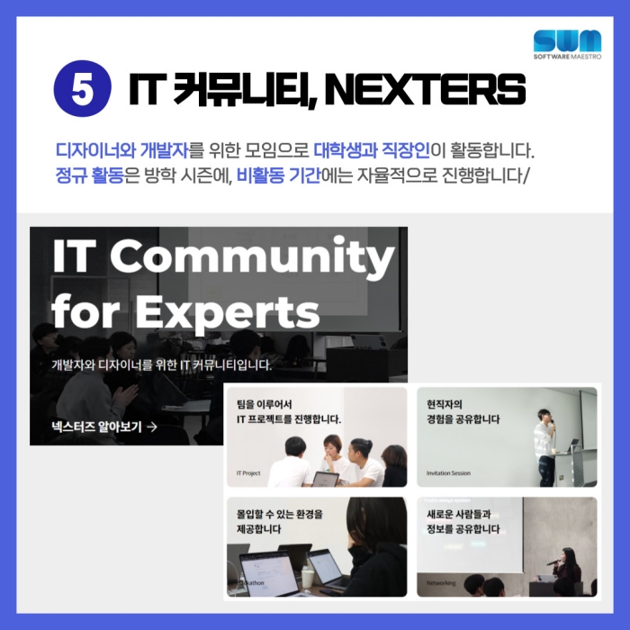 넥스터즈는 학생과 실무자 모두가 속할 수 있는 동아리라고 해요.
