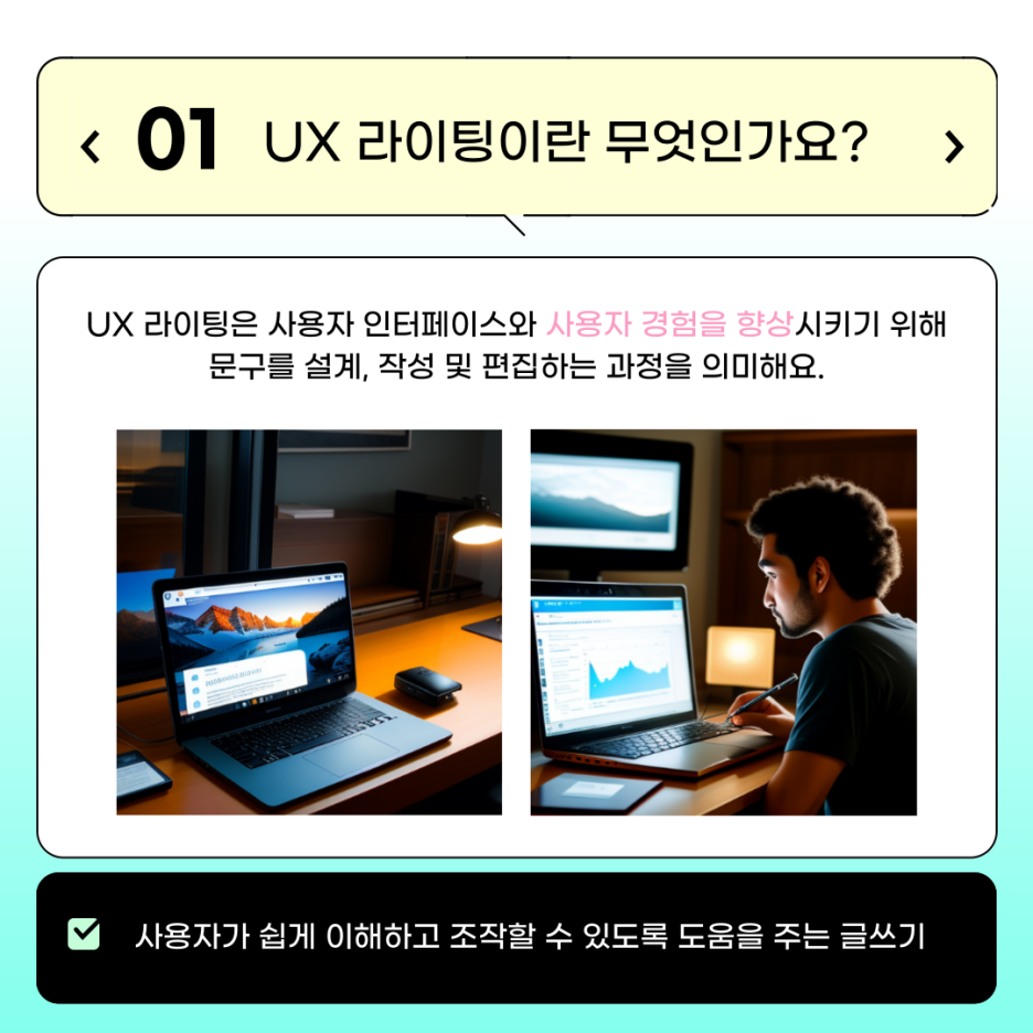 사용자 인터페이스(UI)와 사용자 경험을 향상시키기 위해 텍스트와 문구를 설계, 작성 및 편집하는