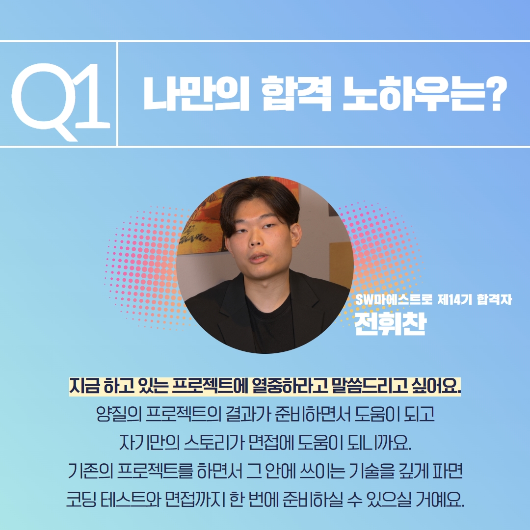 오늘은 SW마에스트로 제14기 합격자 인터뷰에 대한 내용입니다.