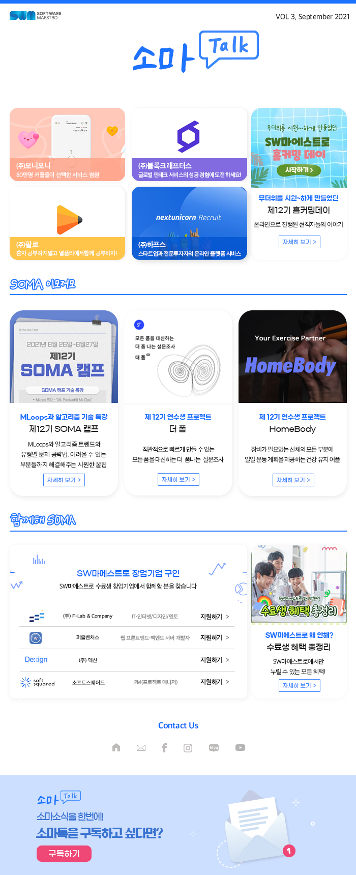 [소마 Talk #2] '21년 멘토 및 수료생 창업기업 인터뷰, 구독 이벤트 진행중
