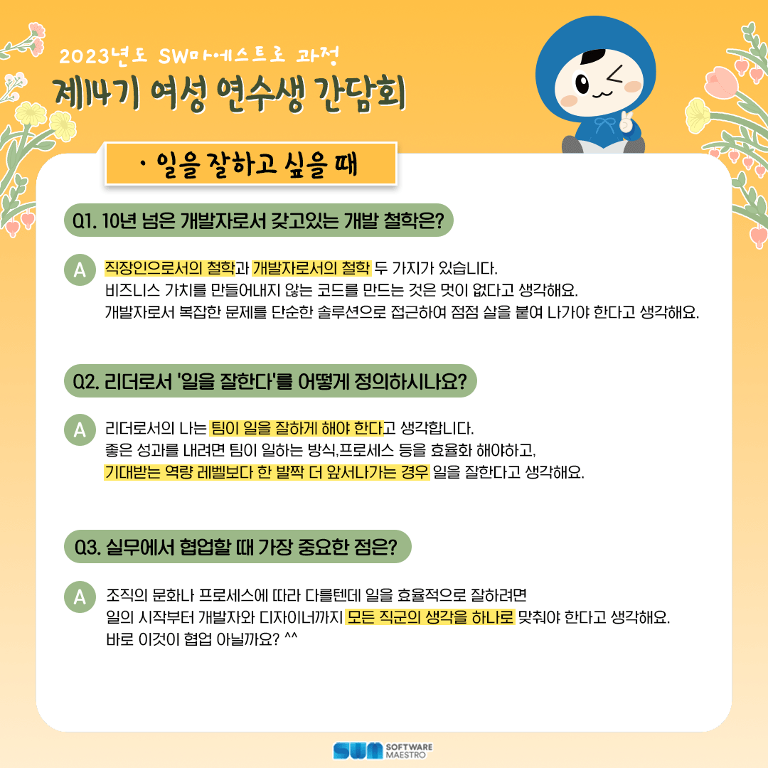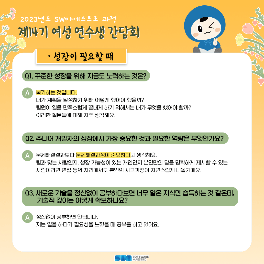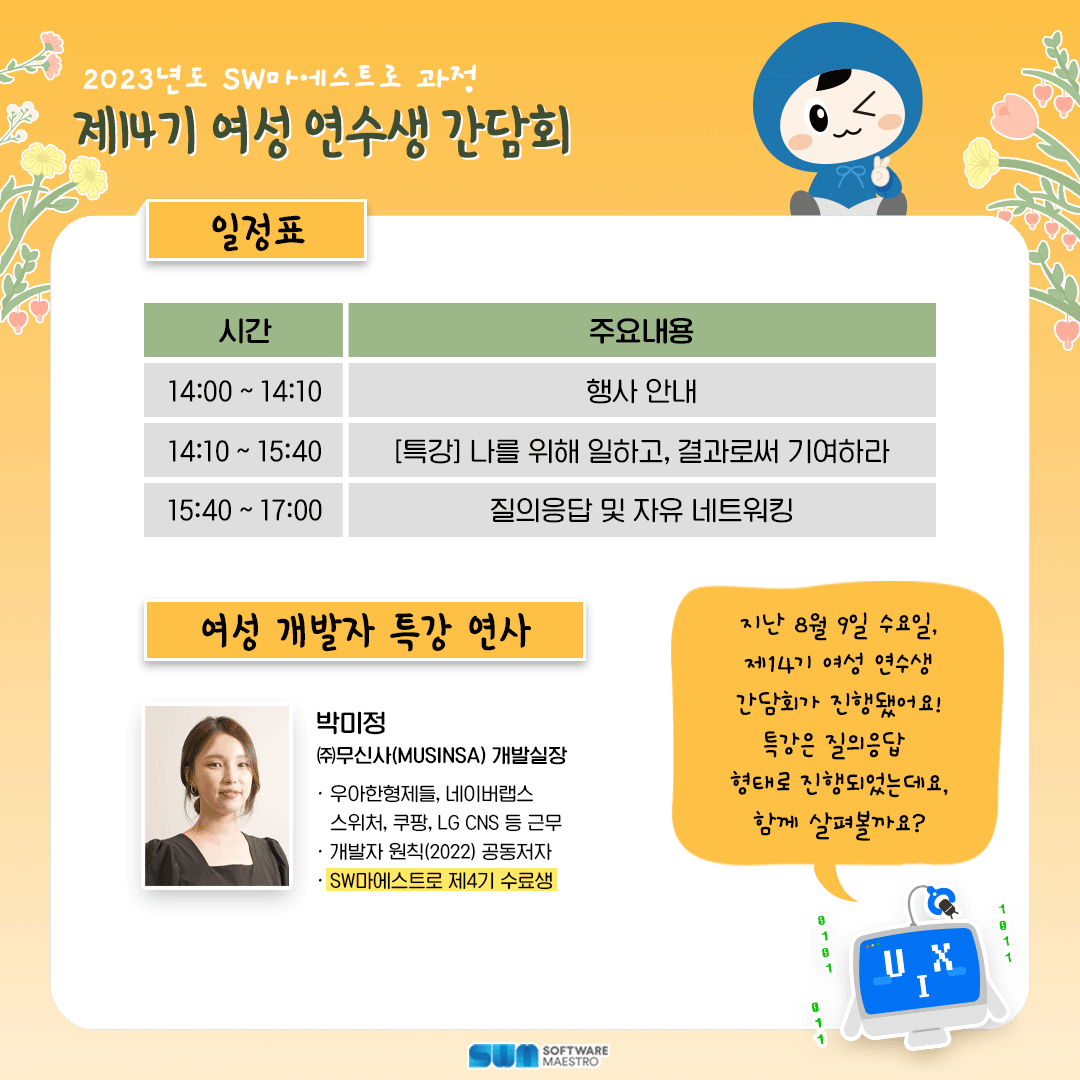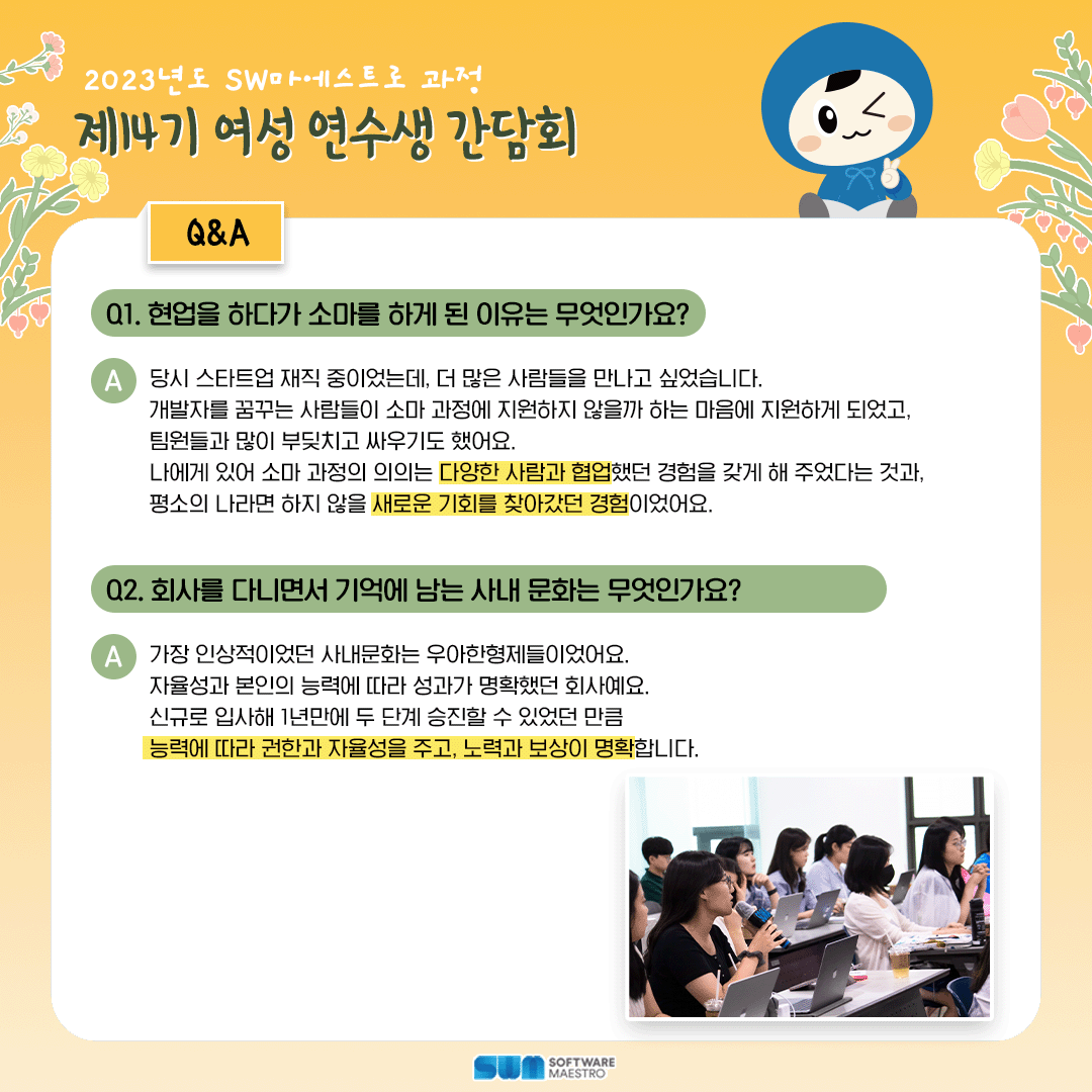 2023년도 SW마에스트로 과정 제14기 여성 연수생 간담회 현장 리뷰!