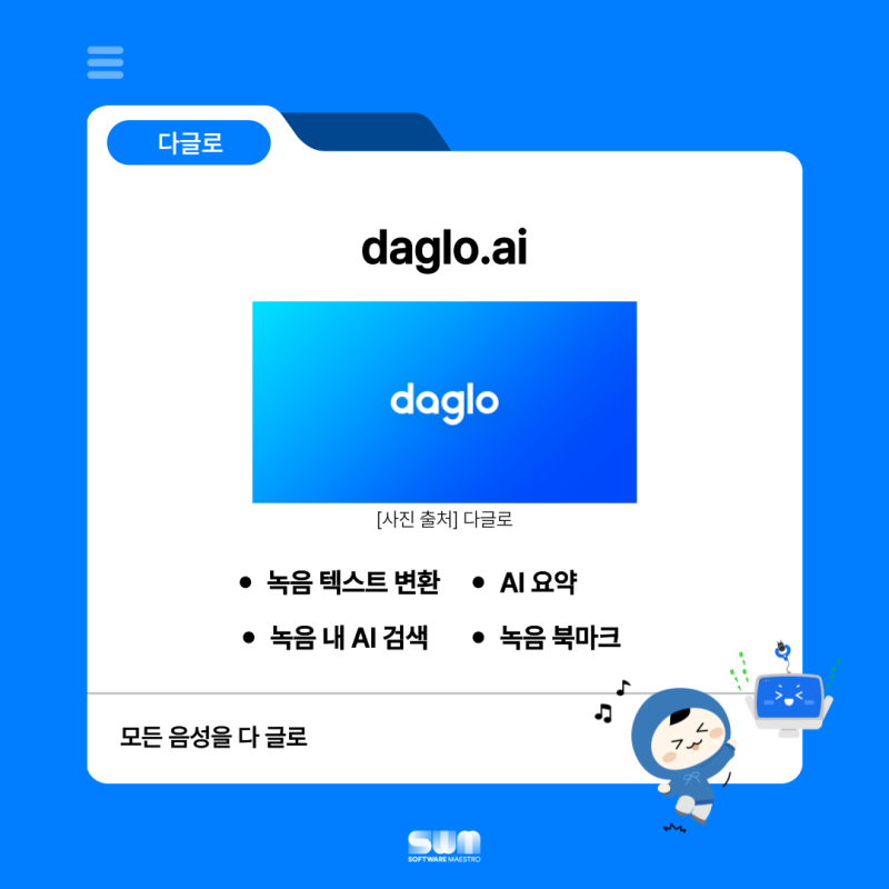 다글로의 주요 기능은 녹음 텍스트 변환,