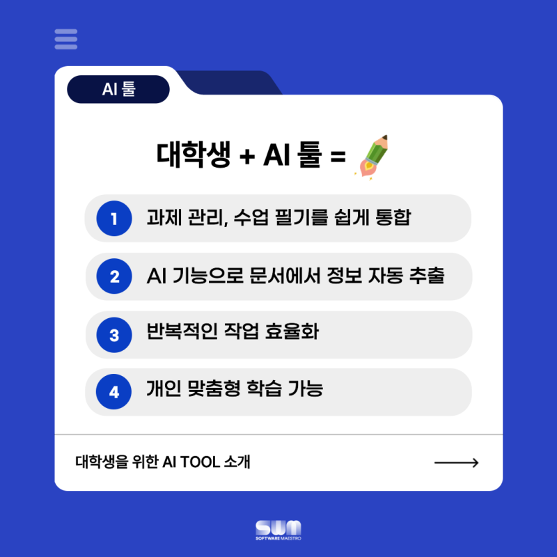 오늘 소개한 AI 툴들을 활용하면 과제, 필기, 학습까지