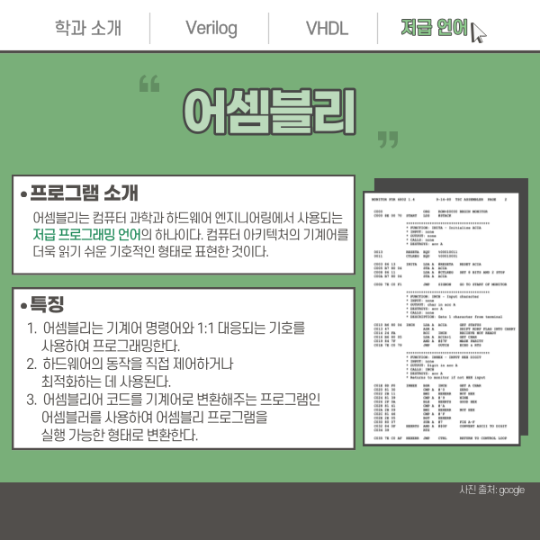 저급 언어에서 소개할 첫 번째는 바로 '어셈블리(Assembly)'입니다.
