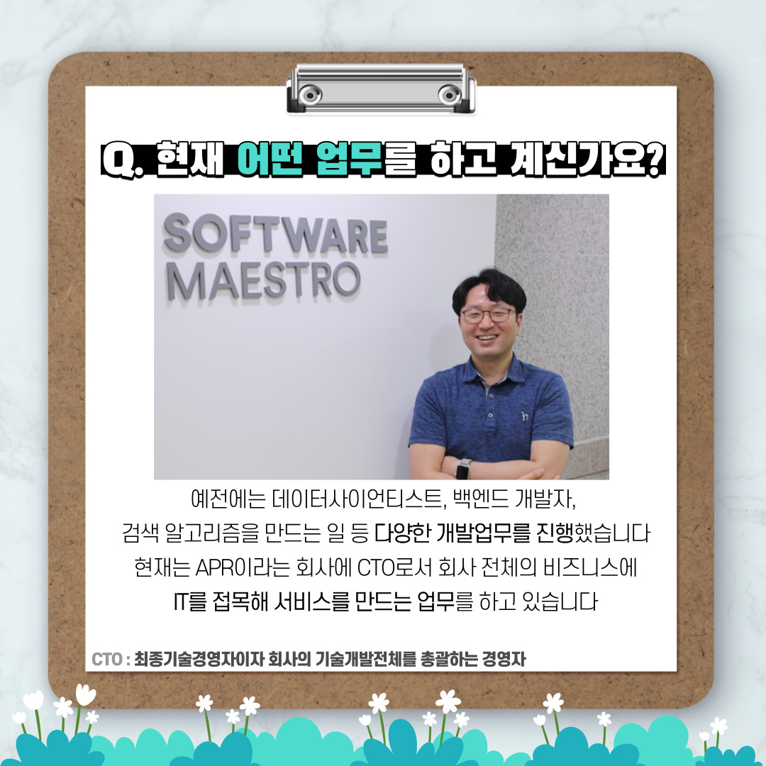 * CTO(Chief Technical Officer) : 최고기술경영자이자 회사의 기술개발 전체를 총괄하는 경영자