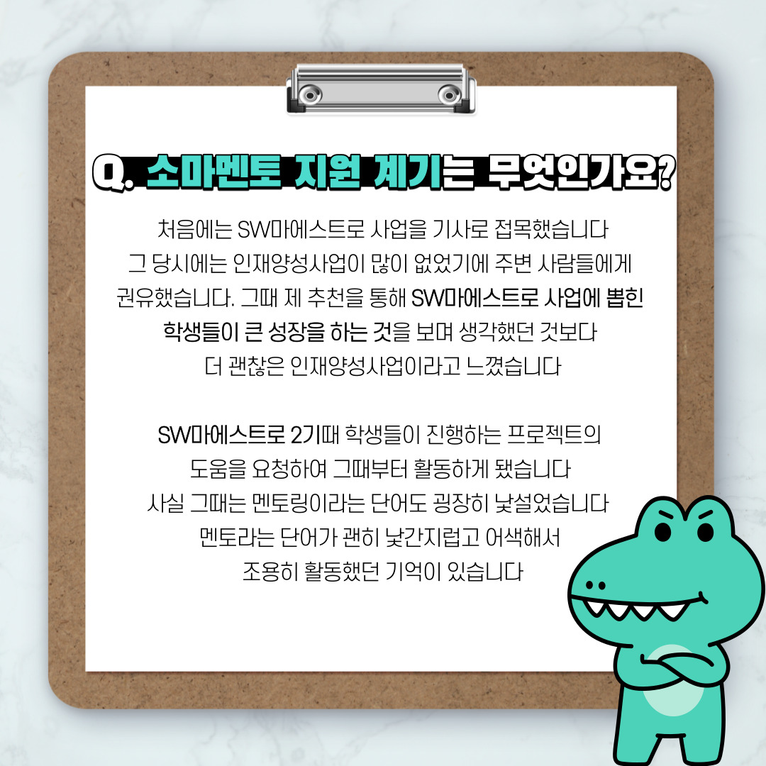 Q. SW마에스트로 멘토에 지원하시게 된 계기는 무엇인가요?