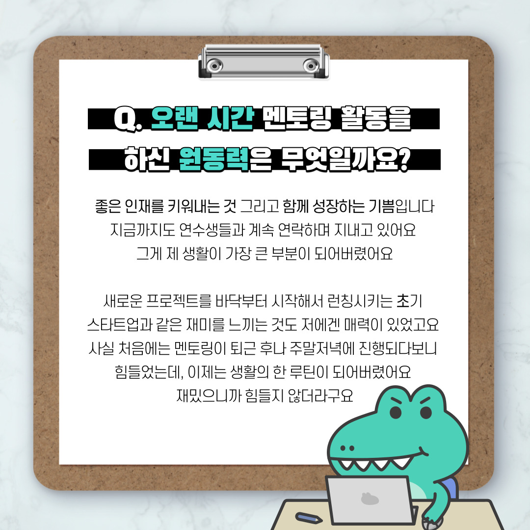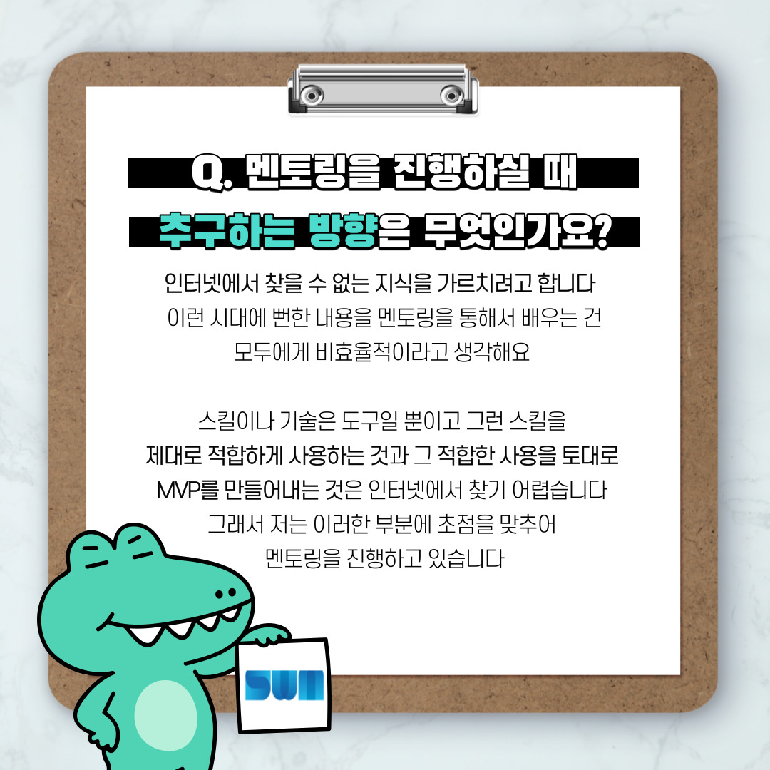 Q. 멘토링을 진행하실 때 추구하는 방향이 있으시다면 무엇인가요?