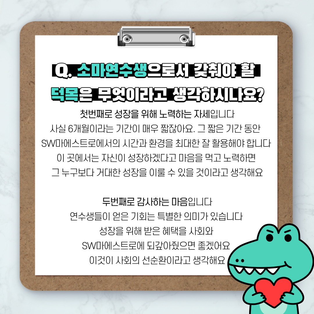 Q. SW마에스트로 연수생으로서 갖추어야 할 가장 큰 마음가짐은 무엇이라고 생각하시나요?