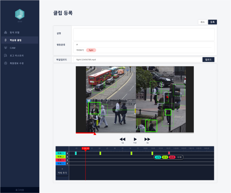 사용자가 탐지하려는 행동 영상을 올리는 과정에서