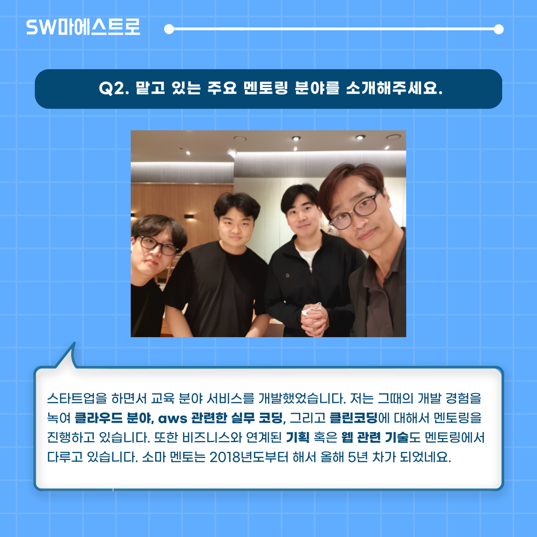 다양하게 다루고 있습니다. 소마 멘토는 2018년도 부터해서 올해 5년차가 되었네요.