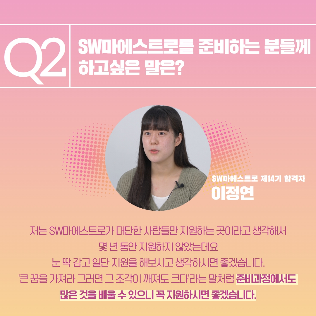 오늘은 SW마에스트로 제14기 합격자 인터뷰에 대한 내용입니다.
