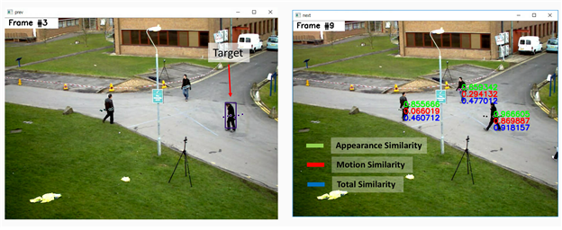 아래 그림을 보면, 3번째 Frame의 Target과 일치하는 9번째 Frame의 tracklet이 가장 큰 유사도를 가지는 것을 확인할 수 있습니다.