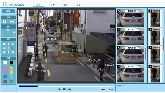 RapidCheck팀은 “영상기록물 속에서 원하는 대상을 빠르고 정확하게 찾아주는 서비스”를 제공합니다. 그리고 그것을 추적까지 해주죠.
